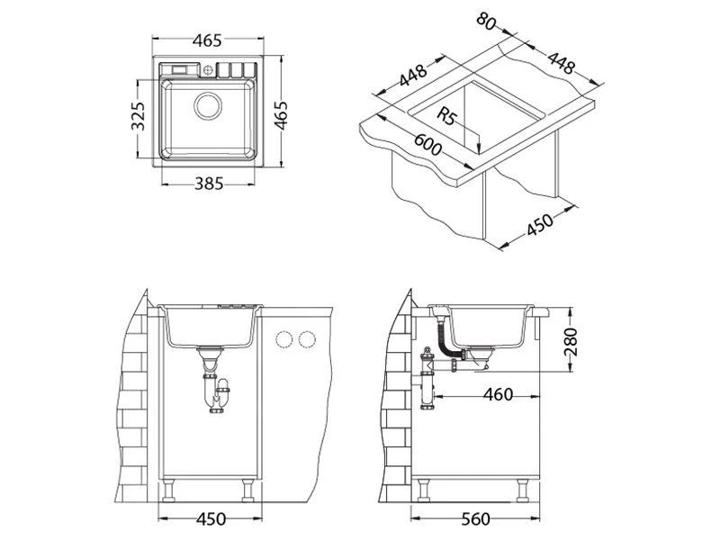 - dimensiones totales 465 x 465 mm