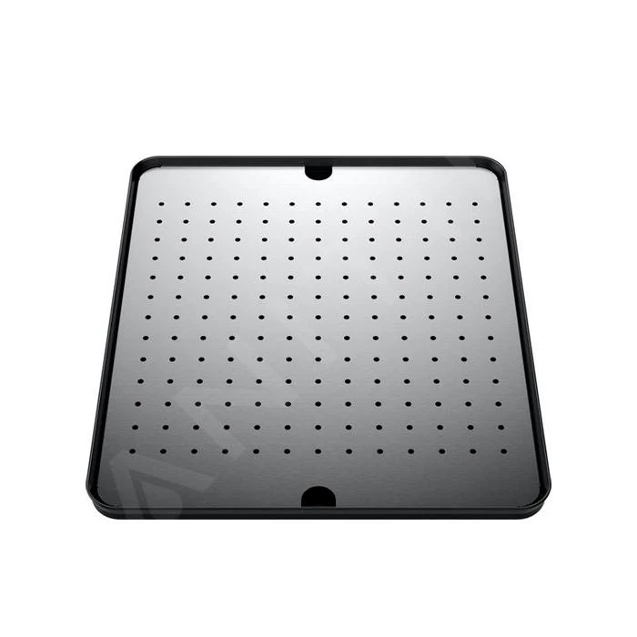 ¿Compraste un fregadero sin escurridor? No es necesario poner los platos recién lavados en la encimera o en un paño de cocina. Te ofrecemos este práctico y elegante escurridor de la reconocida marca Blanco. El escurridor está hecho de plástico de alta calidad en un color negro de diseño combinado con piezas de acero inoxidable. Sus dimensiones son 365 x 425 mm.