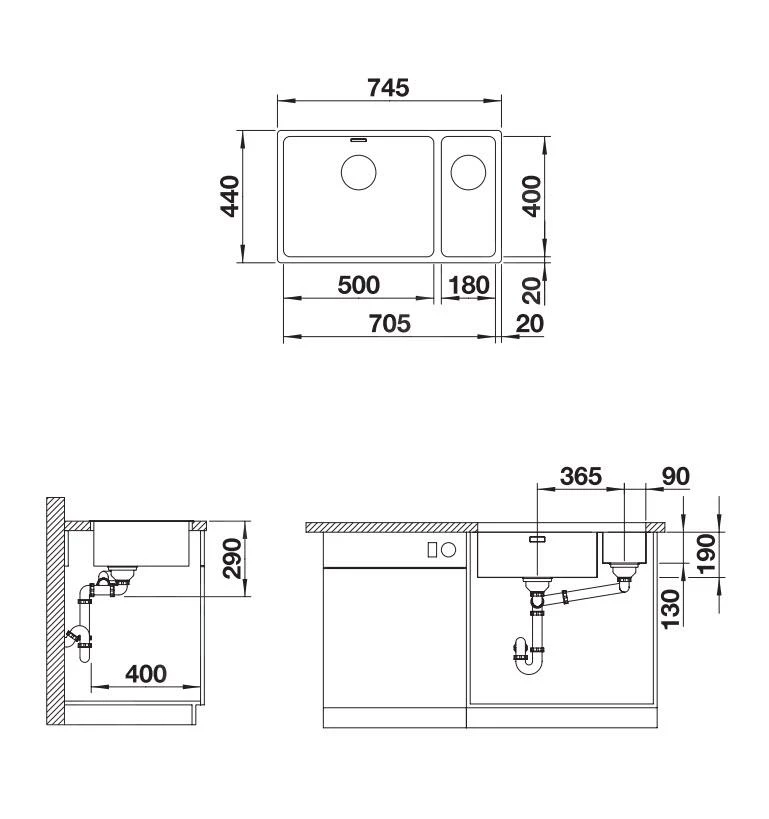 - dimensiones de seno más pequeño 180 x 400 mm