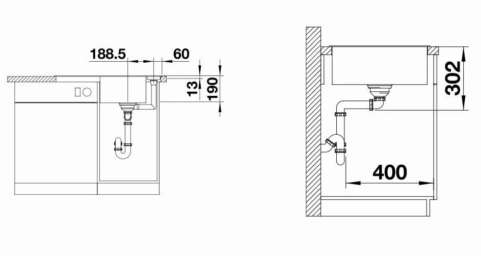 - profundidad de fregadero: 190 mm