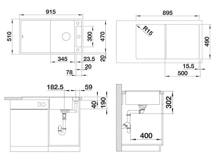 Blanco Dalago 6 – Fregadero De Silgranite, 615×510 Mm, Con Control De Desagüe, Negro 525873