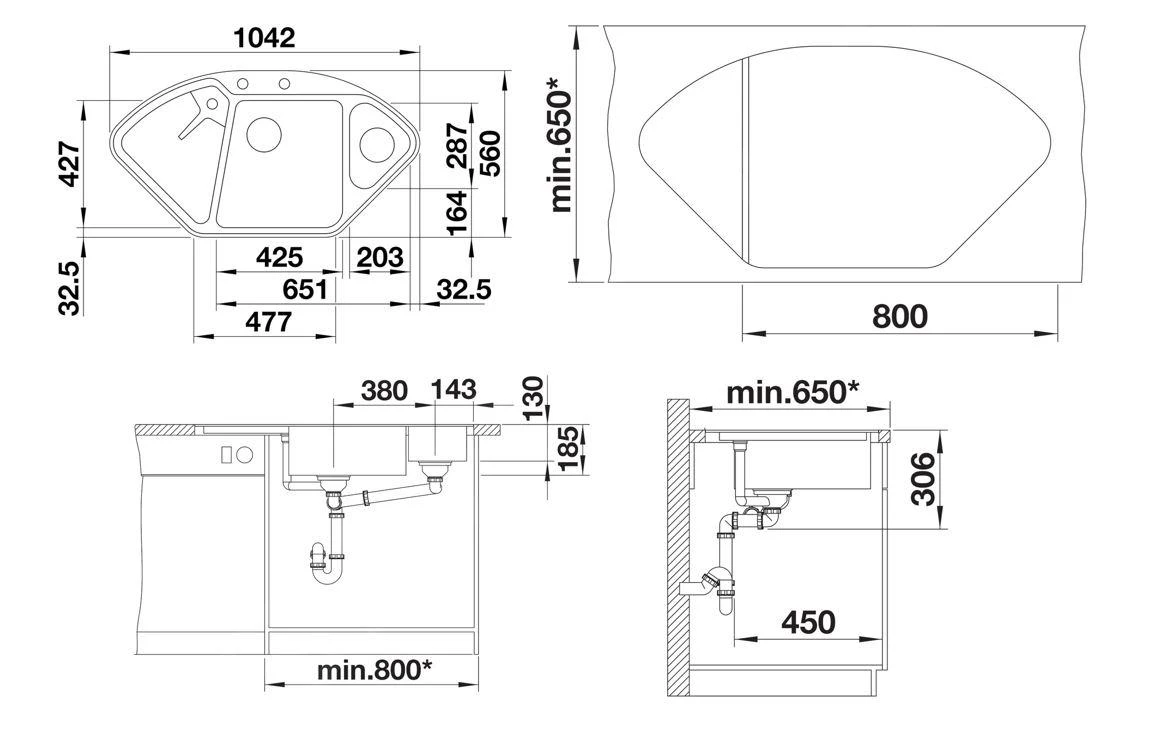 - dimensiones del seno de fregadero 425 x 427 mm