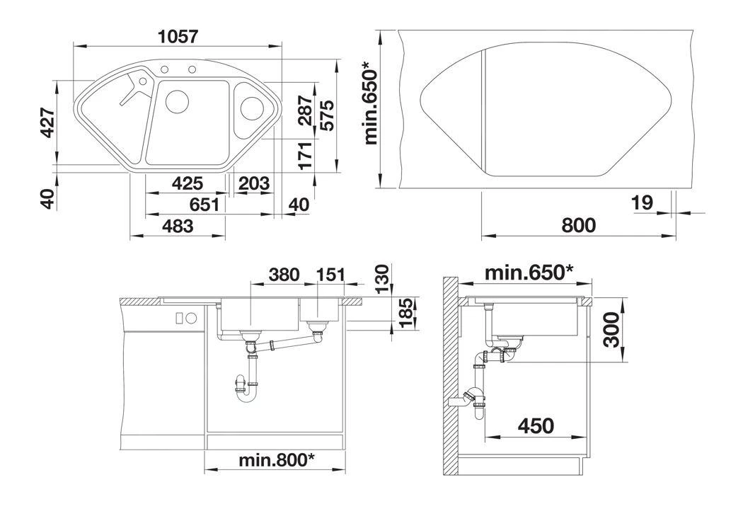 - juego de desagüe y rebosadero con tubo que ahorra espacio