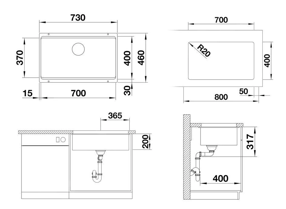 - el escalón integrado crea un nivel funcional adicional dentro del fregadero