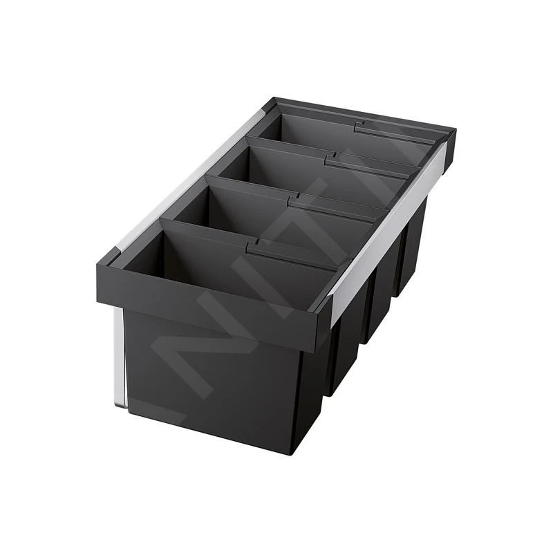 Amplio y práctico cubo de basura incorporado con cuatro contenedores con una capacidad total de 73 litros