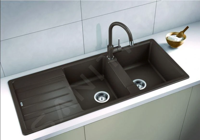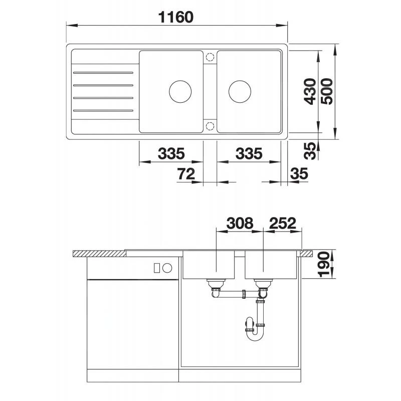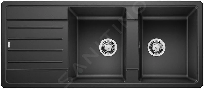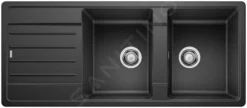 ¿Estás eligiendo un fregadero de dos senos para tu cocina? ¿Quieres que sea a la vez elegante y atemporal, pero muy espacioso y cómodo? Te ofrecemos el fregadero de cocina Blanco Legra 8 S en diseño de doble cara. Cuenta con dos senos de igual tamaño y un amplio escurridor en el que podrás colocar cómodamente los platos, vasos y cubiertos lavados. El fregadero es de material SILGRANIT® muy duro, de alta calidad y resistente, en un moderno color negro. Blanco Legra 8 está diseñado para el montaje superior en un armario bajo con una anchura mínima de 800 mm. Las dimensiones totales de este fregadero de cocina son 1160 x 500 mm. Las dimensiones de ambos senos son 335 x 430 mm y su profundidad es de 190 mm.