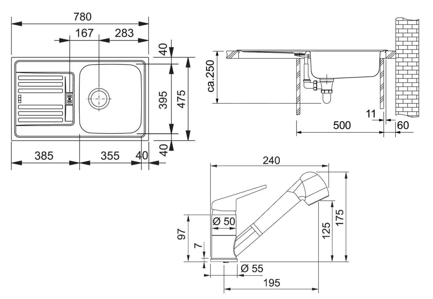 Después de su uso, limpie el fregadero y el escurridor con un paño suave y húmedo y detergente y enjuague con agua limpia. En las zonas de agua dura, puede utilizar una crema o pasta de limpieza líquida para evitar la formación de una capa opaca de cal. Si se utilizan almohadillas de plástico para el fregadero, hay que tener cuidado de que no permanezcan en la superficie del fregadero durante mucho tiempo, ya que atrapan la suciedad y la humedad debajo y provocan depósitos de agua.