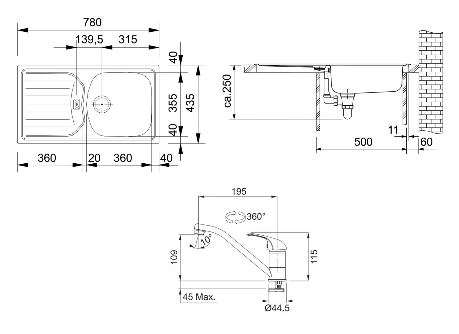 Después de su uso, limpie el fregadero y el escurridor con un paño suave y húmedo y detergente y enjuague con agua limpia. En las zonas de agua dura, puede utilizar una crema o pasta de limpieza líquida para evitar la formación de una capa opaca de cal. Si se utilizan almohadillas de plástico para el fregadero, hay que tener cuidado de que no permanezcan en la superficie del fregadero durante mucho tiempo, ya que atrapan la suciedad y la humedad debajo y provocan depósitos de agua.