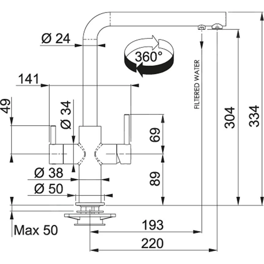 - caudal de agua filtrada: 2 l/min (presión 3 bar)