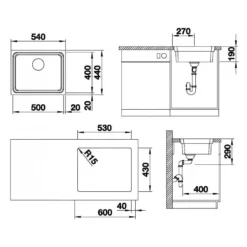 Blanco Etagon 500 – Fregadero, 540×440 Mm, Con Guías Deslizantes, Acero Inoxidable 521840