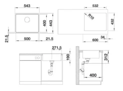 Blanco Subline 500 – Fregadero Silgranite, 543×443 Mm,SteelFrame, InFino, Blanco 524110