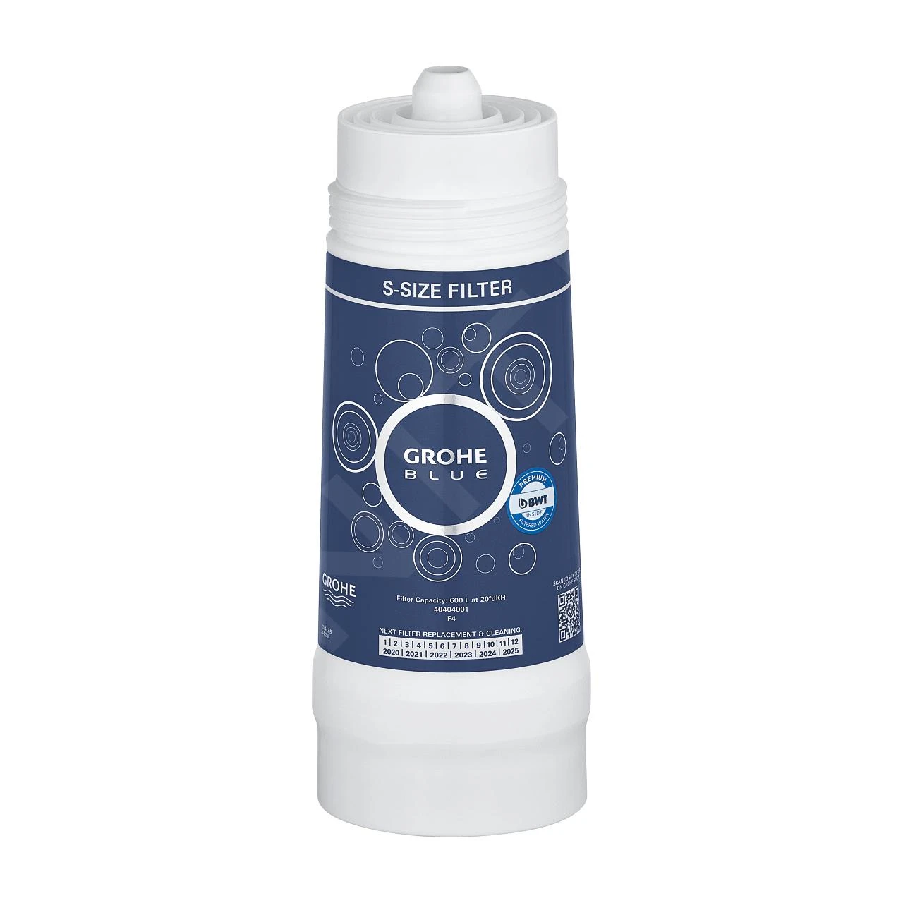 Regálate a ti y a toda tu familia un régimen de bebida saludable. El filtro Grohe Blue, compatible con Grohe Blue Home, Grohe Blue Professional y Grohe Blue Pure, purifica eficazmente el agua del grifo. En sus cinco fases de filtrado, Grohe Blue elimina hasta las partículas más pequeñas de bacterias, moho, cloro, metales pesados y otras impurezas que afectan negativamente al sabor del agua y son una amenaza para la salud humana. El resultado es un agua cristalina y perfectamente sana, la fuente de líquido más saludable posible para el cuerpo humano. Con un solo cartucho Grohe Blue, obtendrás 600 litros de agua de excelente sabor y calidad. Una vez que el recipiente esté lleno, basta con desenroscarlo e introducir uno nuevo.