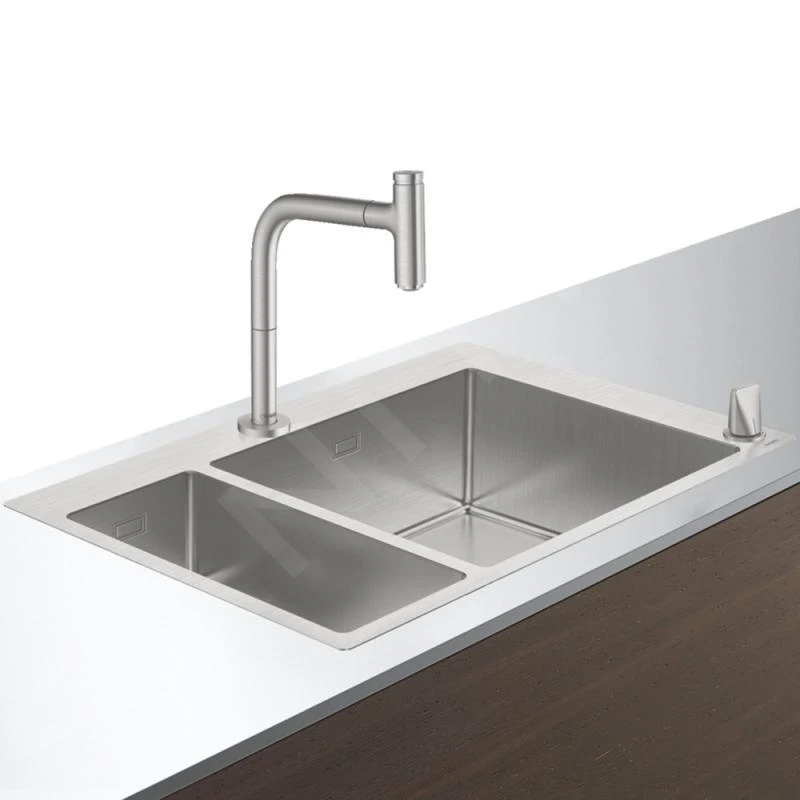 El fregadero está soldado a mano, gracias al acero inoxidable de 1 mm de grosor y a la parte reforzada para montar el grifo, es muy estable. El acero inoxidable no sólo es fuerte, sino también resistente a sustancias agresivas como los ácidos de la fruta, además de ser resistente a la corrosión, higiénico y capaz de soportar altas temperaturas. La instalación empotrada crea una transición continua entre el fregadero y la encimera. El rebosadero está discretamente colocado en la parte lateral. El fregadero tiene un diseño minimalista y, gracias a sus bordes precisos y esquinas redondeadas, se convierte en un accesorio de cocina de calidad que servirá durante muchos años.