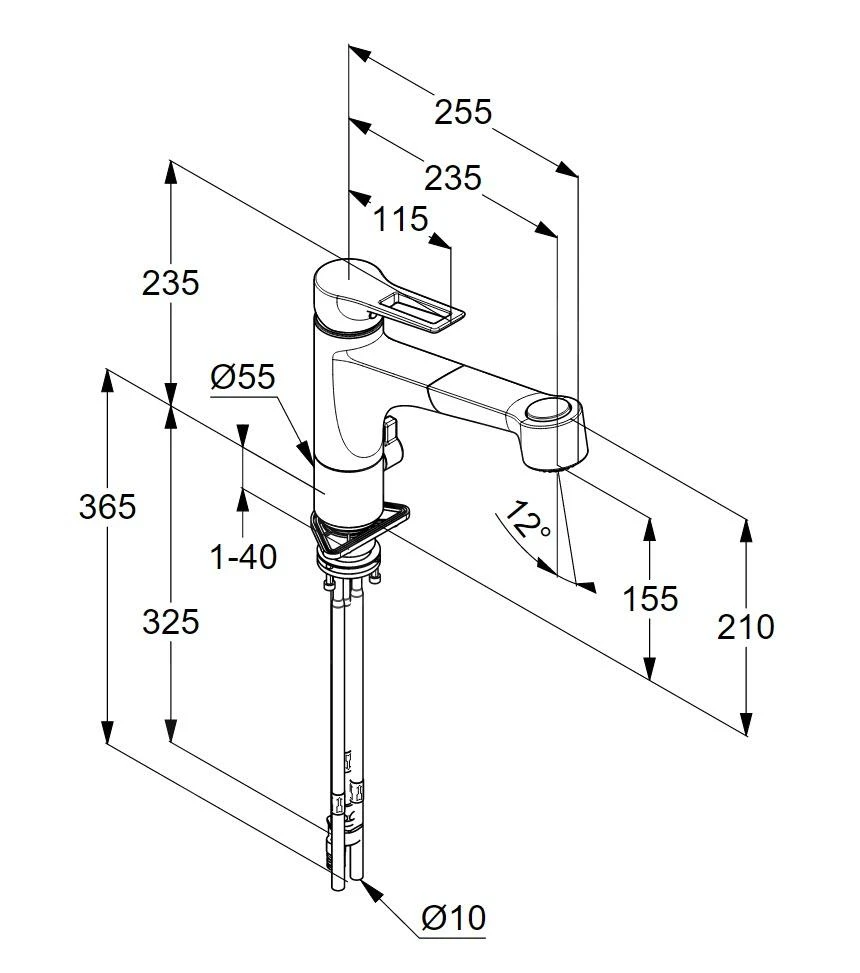 - cartucho cerámico con posibilidad de limitación de temperatura máxima del agua