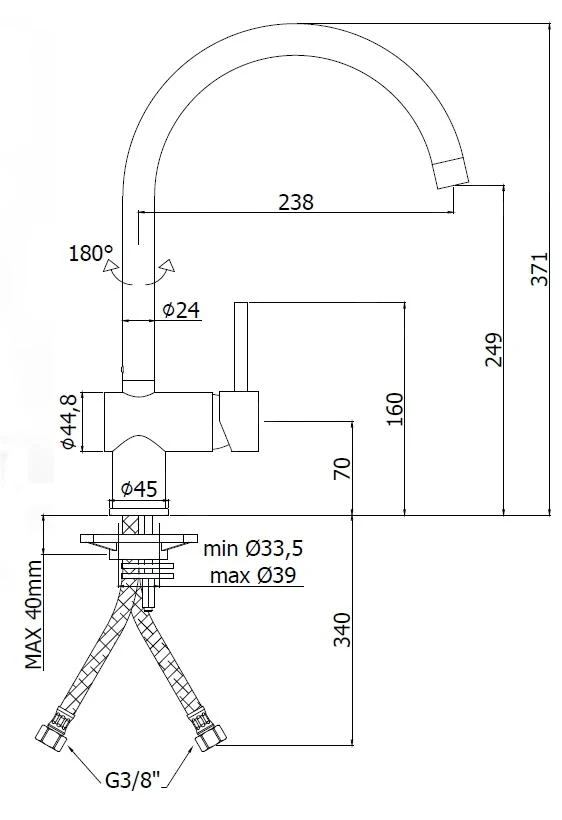 - longitud del brazo 238 mm, zona de confort 249 mm