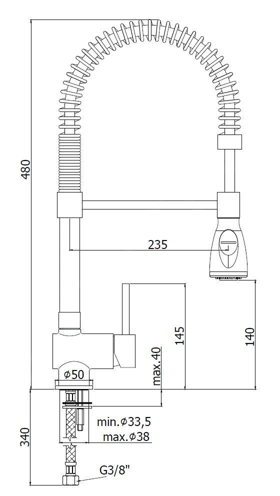 - altura de grifo: 480 mm