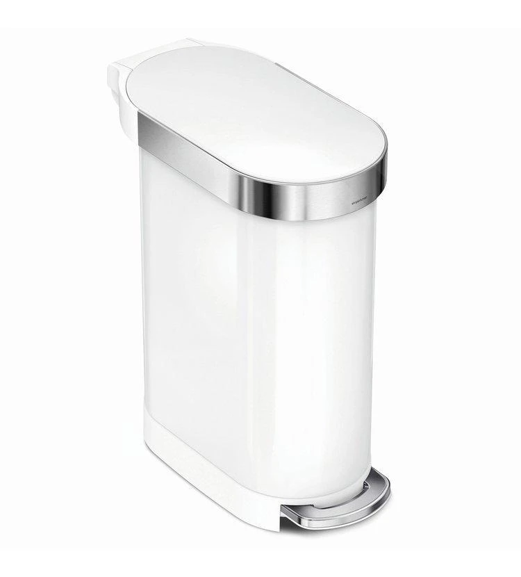 Cubo de basura estrecho, con pedal y marco de acero inoxidable