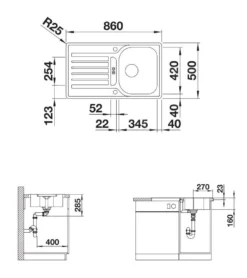 Blanco Lantos 45 – Fregadero, 860×500 Mm, Con Control De Desagüe, Acero Inoxidable Cepillado 519717